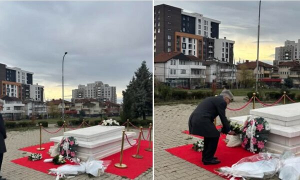 Fotografitë e publikuara shfaqin ambasadorin Rudolph pranë varrit të Rugovës, duke kryer ceremoninë e vendosjes së kurorës.